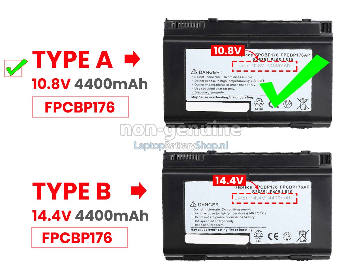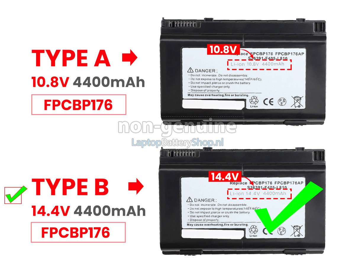 Controleer het model en de vorm van uw originele batterij van de Fujitsu LifeBook E8420E (gebruik Ctrl + F om naar modellen te zoeken). Zorg ervoor dat u de juiste batterij krijgt.