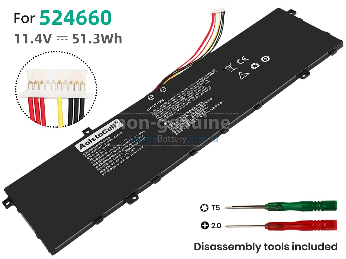 Controleer het model en de vorm van uw originele batterij van de Hasee 524660 (gebruik Ctrl + F om naar modellen te zoeken). Zorg ervoor dat u de juiste batterij krijgt.