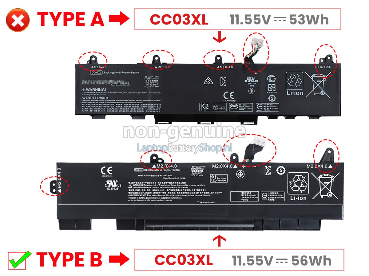 Controleer het model en de vorm van uw originele batterij van de HP L77991-005 (gebruik Ctrl + F om naar modellen te zoeken). Zorg ervoor dat u de juiste batterij krijgt.