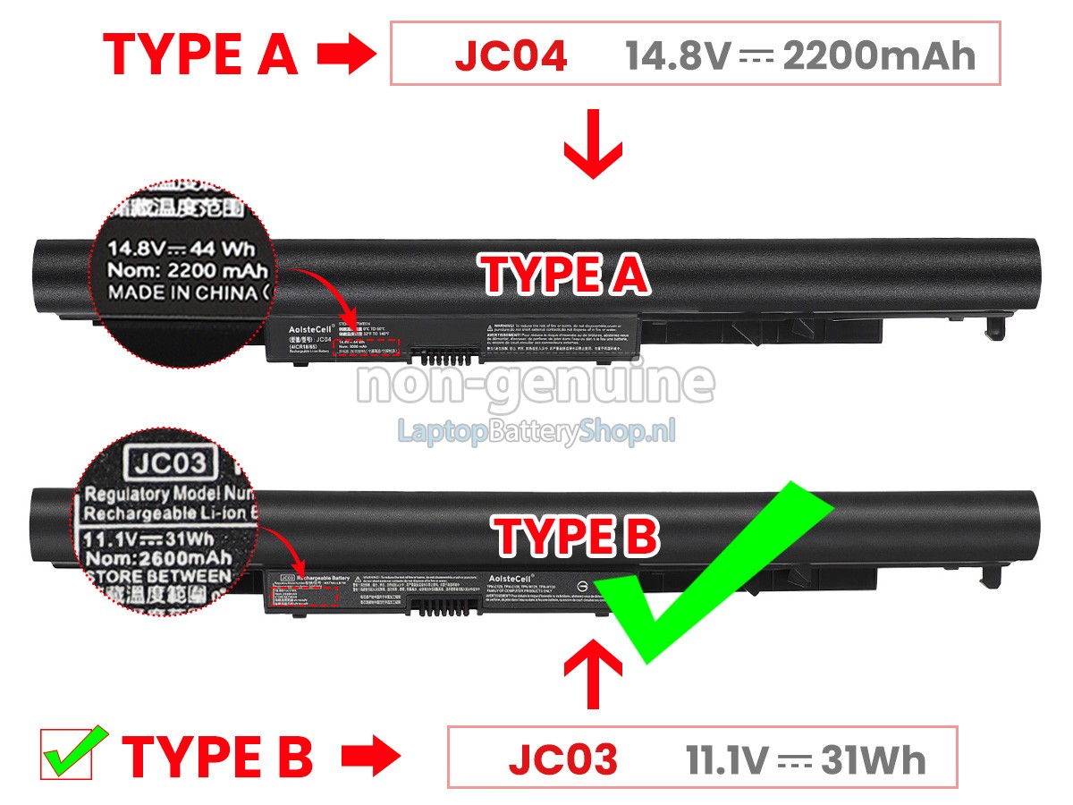 Controleer het model en de vorm van uw originele batterij van de HP Pavilion 15-BS038NB (gebruik Ctrl + F om naar modellen te zoeken). Zorg ervoor dat u de juiste batterij krijgt.