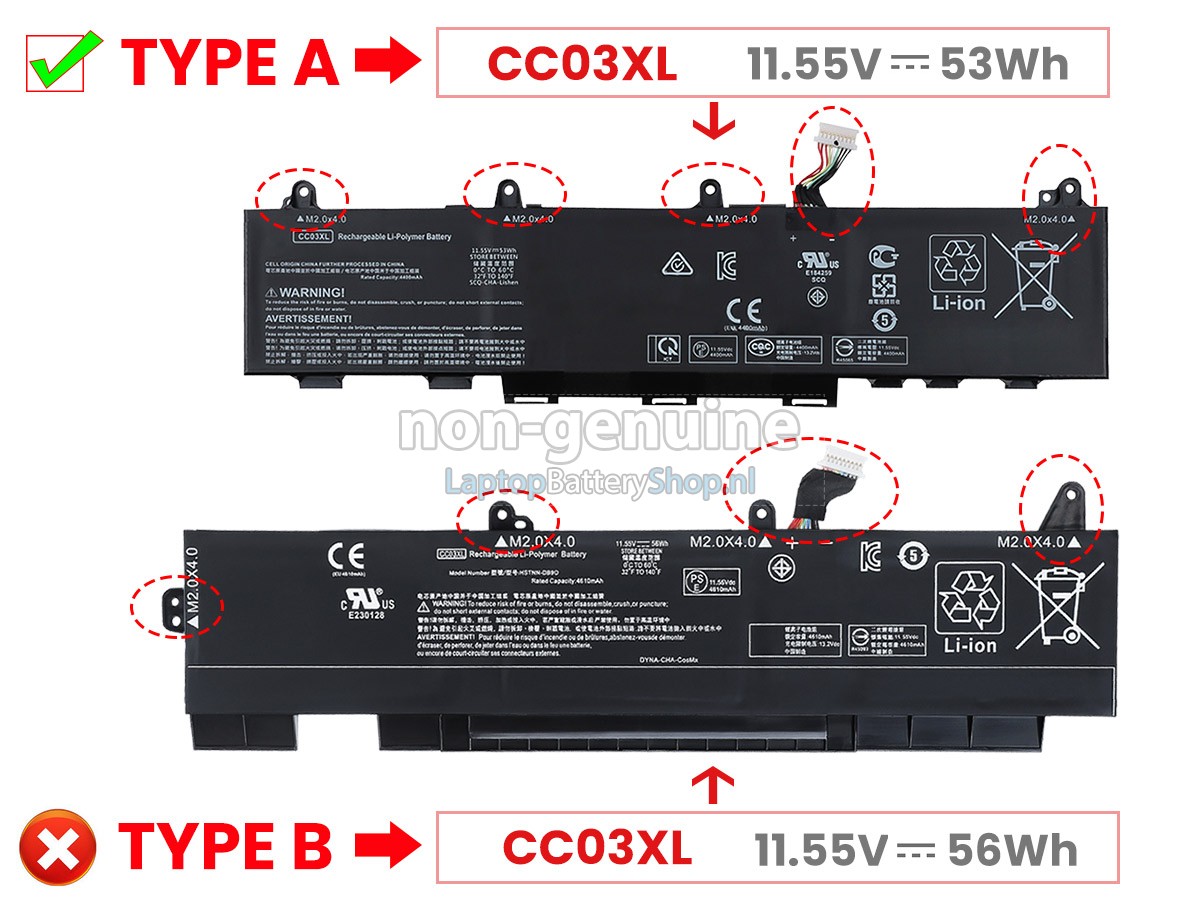 De HP ZBook FIREFLY 14 INCH G8 accu met lange levensduur bevat A-batterijen voor een langere levensduur van de batterij en meer oplaadcycli. Snelle levering, gemakkelijke terugkeer, 100% restitutie binnen 30 dagen. There are 3 types battery named "CC03XL", so before placing an order please open your laptop to check your old battery, ensure it is same to our product.