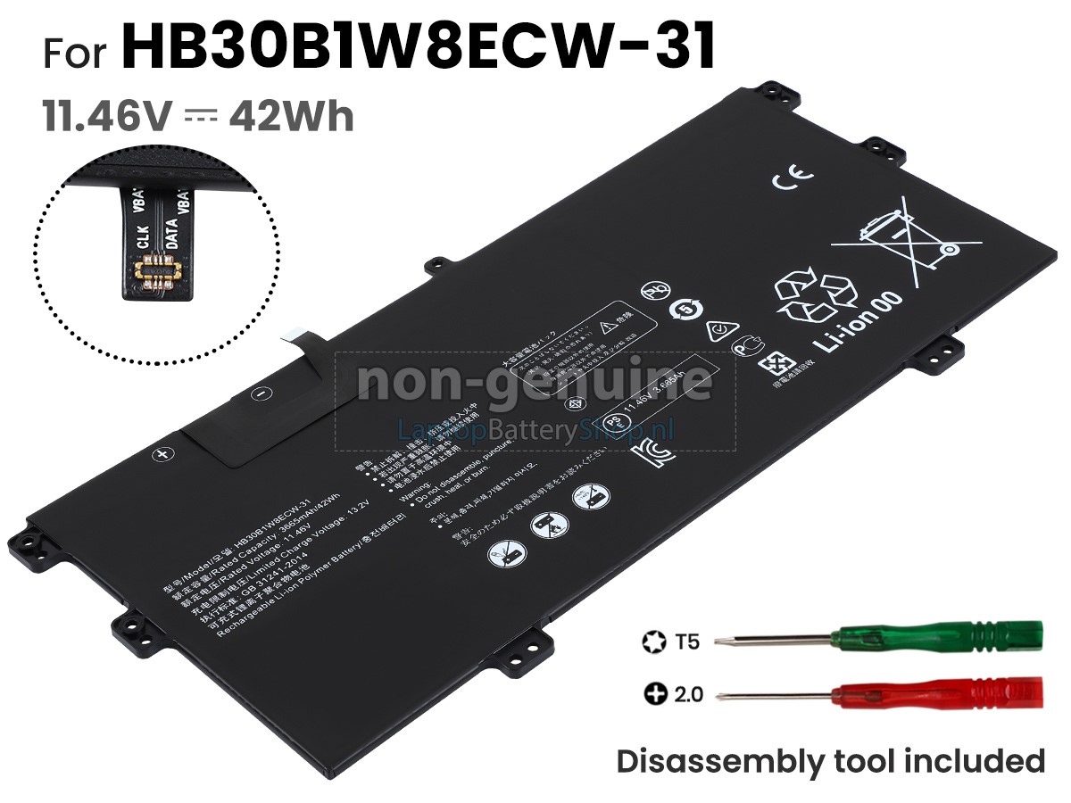 Breng uw originele laptop weer tot leven met onze Huawei HB30B1W8ECW-31B-laptopbatterij - hoogwaardige materialen, hoogwaardige batterijen en veiligheidsvoorzieningen.