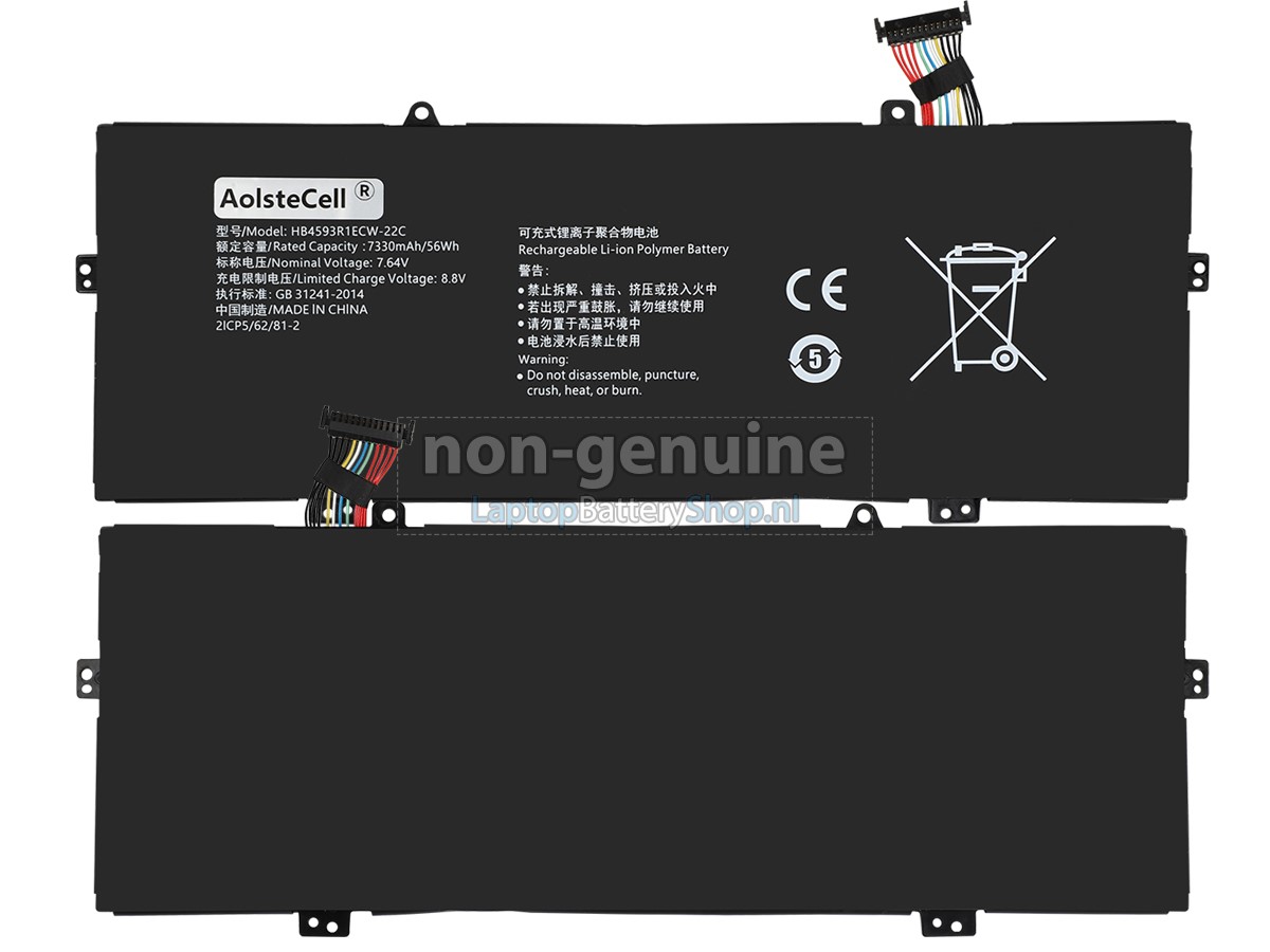 Breng uw originele laptop weer tot leven met onze Huawei HB4593R1ECW-22C-laptopbatterij - hoogwaardige materialen, hoogwaardige batterijen en veiligheidsvoorzieningen.