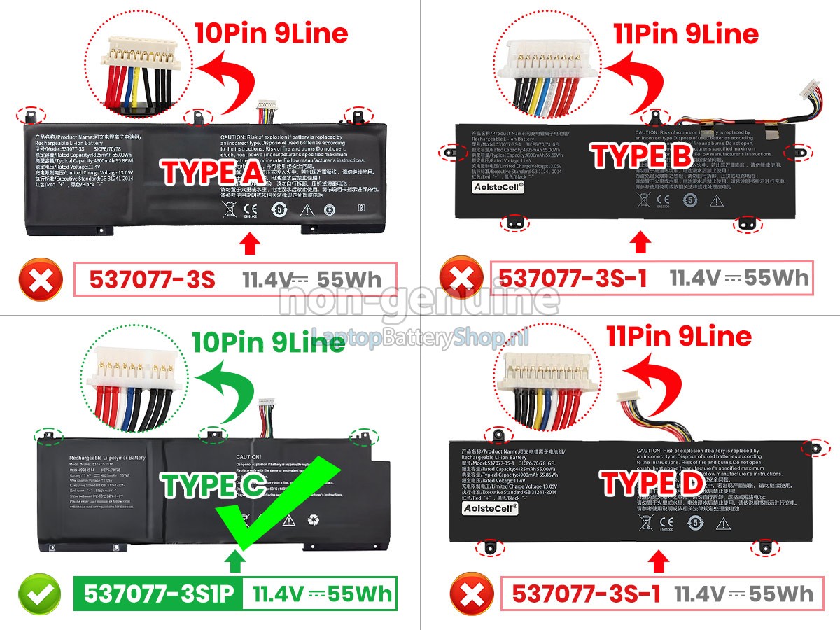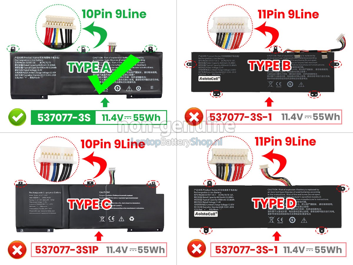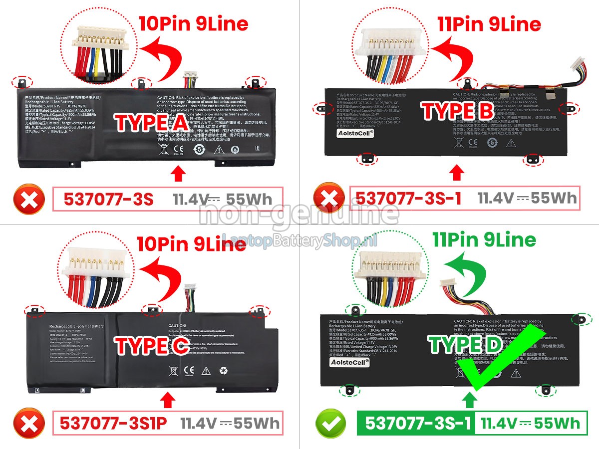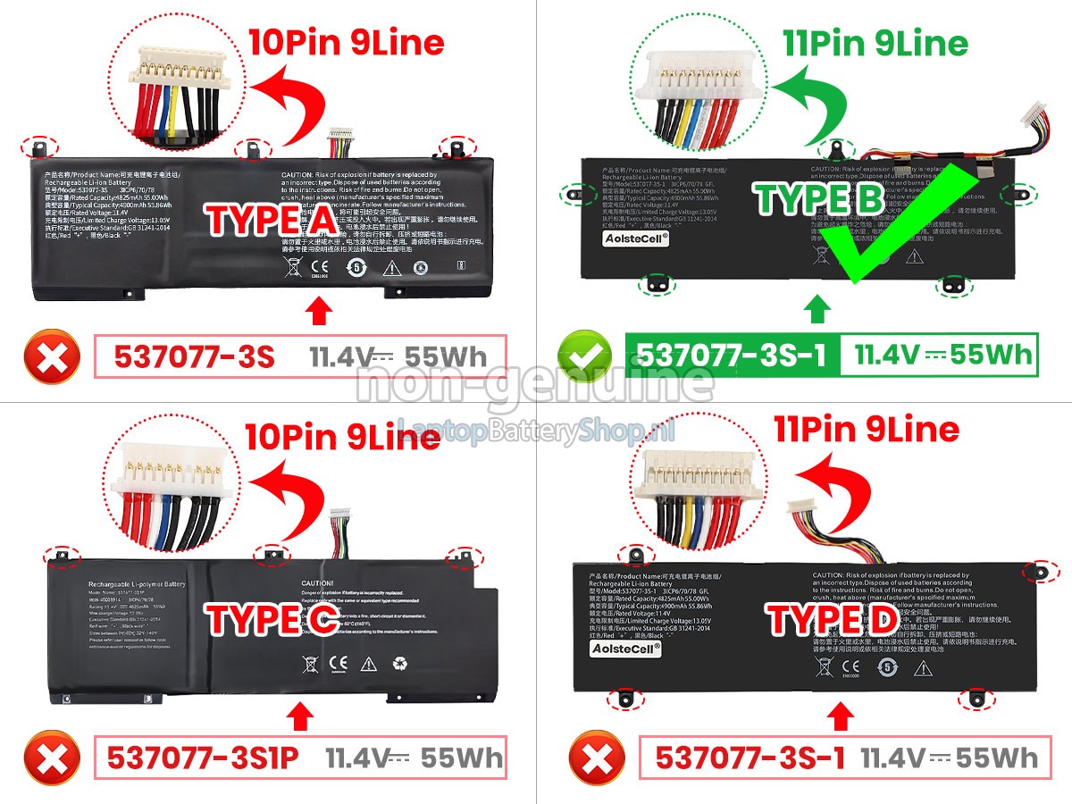 Controleer het model en de vorm van uw originele batterij van de IPASON 537077-3S1P(3ICP6/70/78) (gebruik Ctrl + F om naar modellen te zoeken). Zorg ervoor dat u de juiste batterij krijgt.