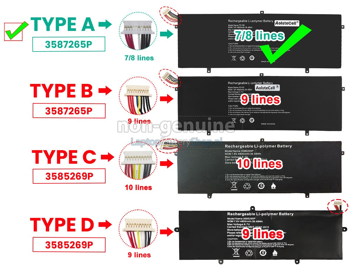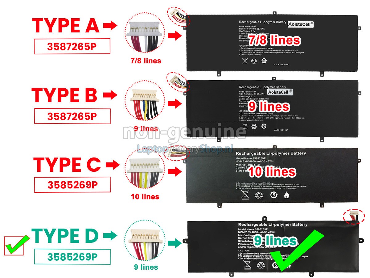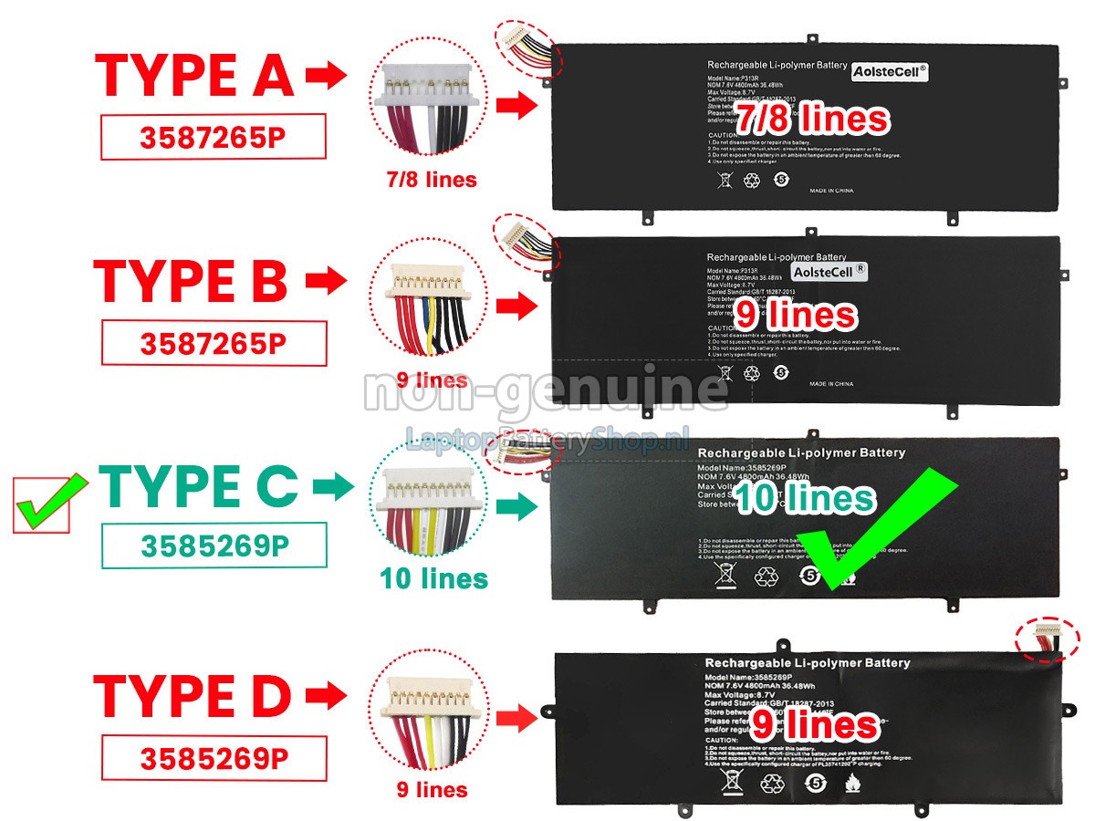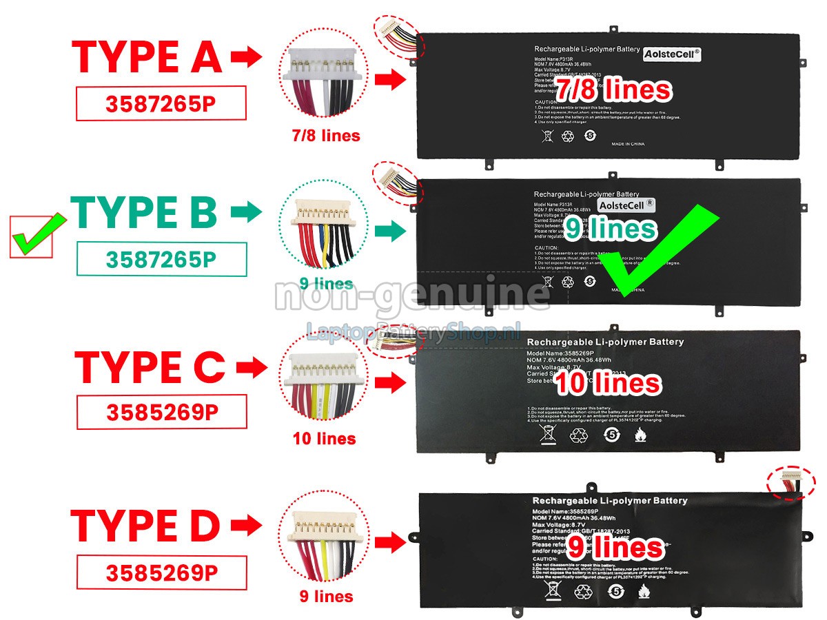 Controleer het model en de vorm van uw originele batterij van de Jumper EZBOOK 3 S (gebruik Ctrl + F om naar modellen te zoeken). Zorg ervoor dat u de juiste batterij krijgt.