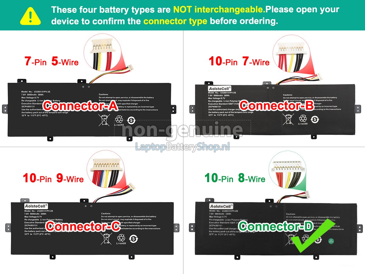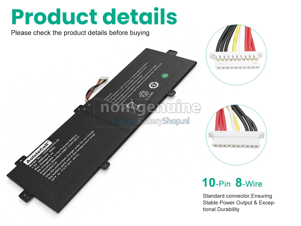Controleer het model en de vorm van uw originele batterij van de Jumper U3285131PV-2S-9LINES (gebruik Ctrl + F om naar modellen te zoeken). Zorg ervoor dat u de juiste batterij krijgt.
