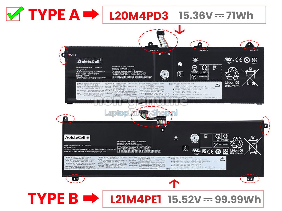 Controleer het model en de vorm van uw originele batterij van de Lenovo THINKBOOK 16P G2 ACH-20YM001APK (gebruik Ctrl + F om naar modellen te zoeken). Zorg ervoor dat u de juiste batterij krijgt.