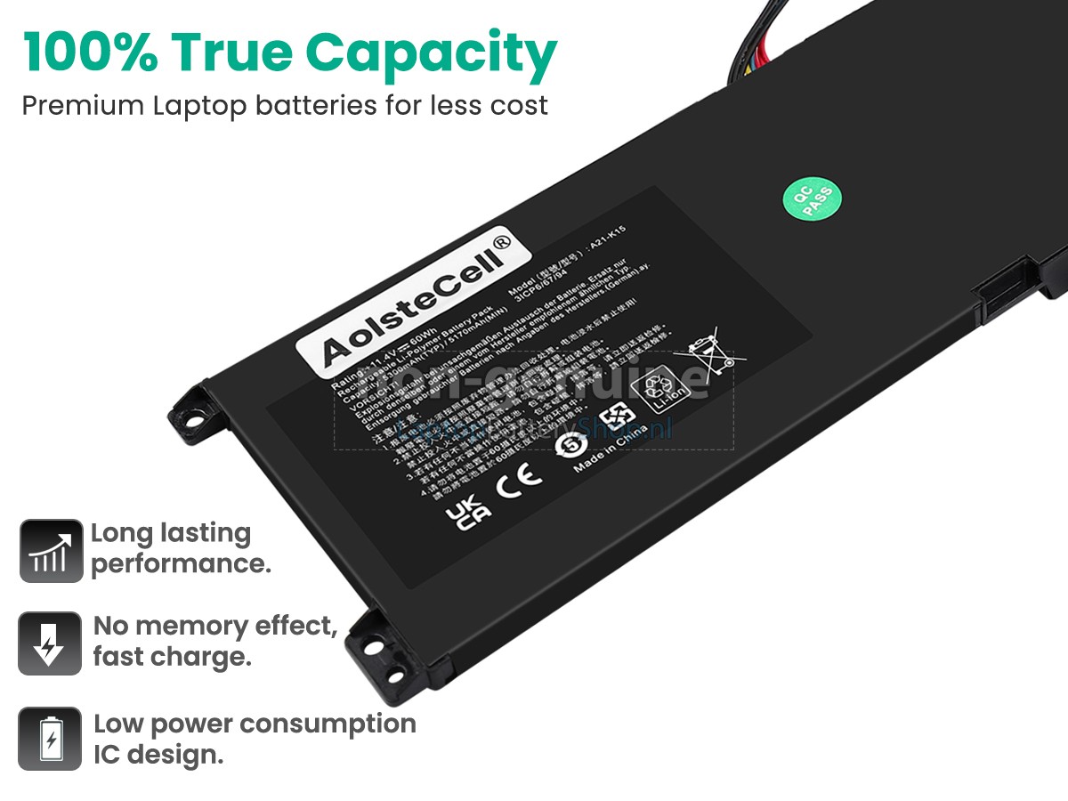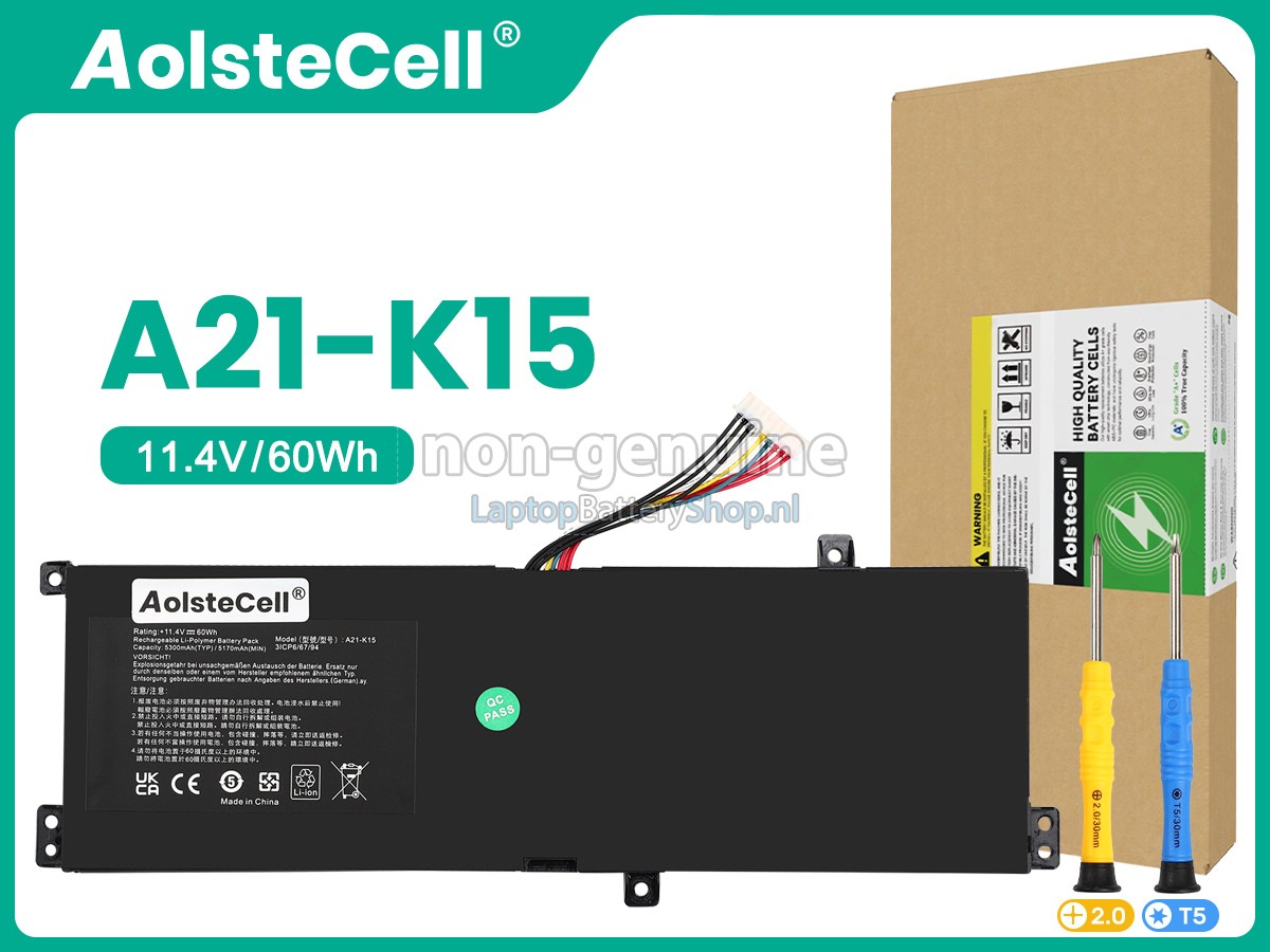 Breng uw originele laptop weer tot leven met onze Machenike A21-K15-laptopbatterij - hoogwaardige materialen, hoogwaardige batterijen en veiligheidsvoorzieningen.