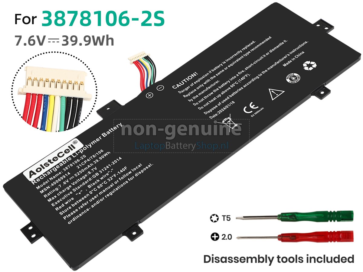 Controleer het model en de vorm van uw originele batterij van de Medion 3878106-2S (gebruik Ctrl + F om naar modellen te zoeken). Zorg ervoor dat u de juiste batterij krijgt.