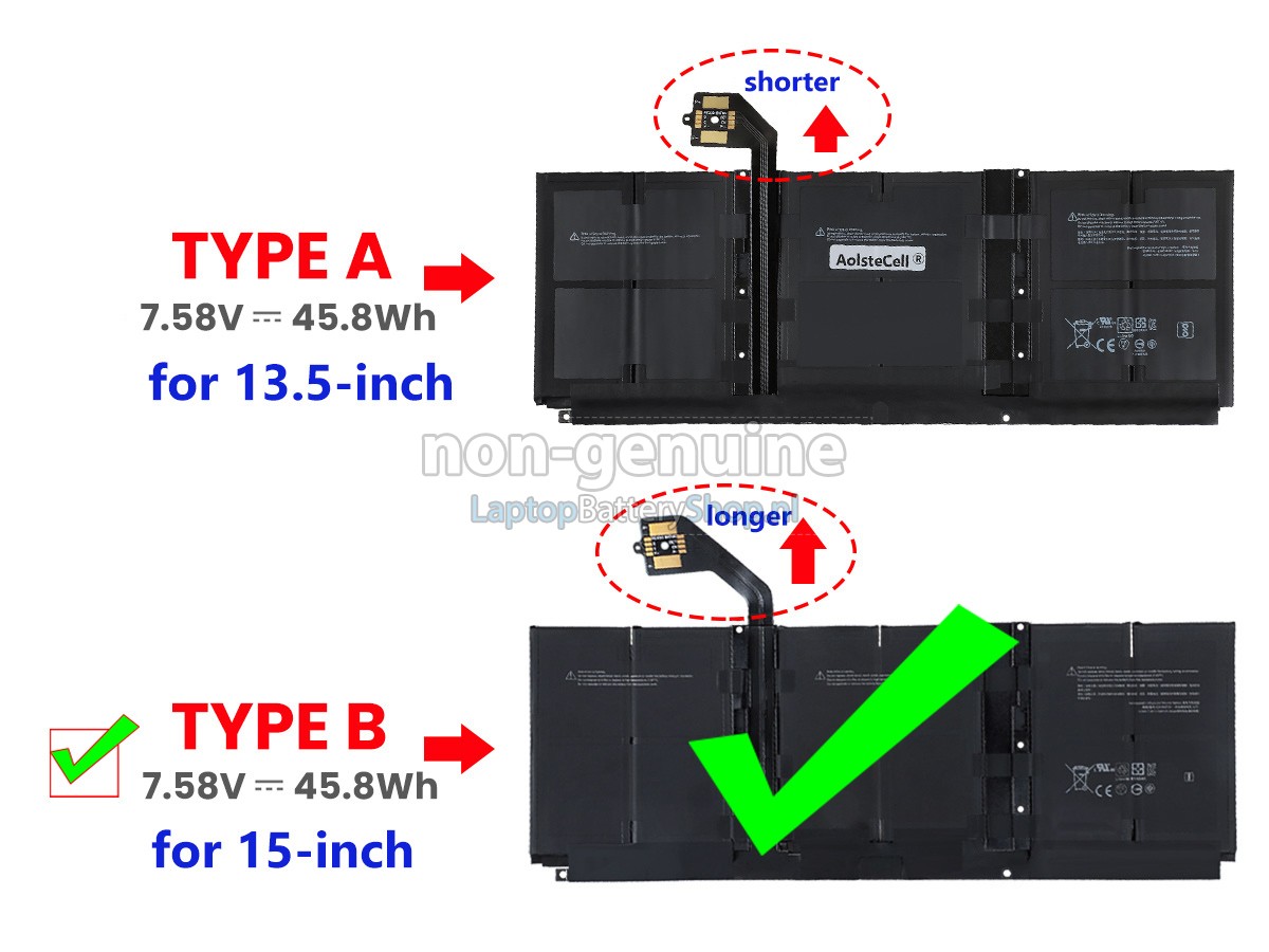 Note :1. 7.58V and 7.6V are compatible, they are in common use. 2. Surface Laptop 3 13.5-inch and 15-inch are use the different battery, before placing an order please check your laptop's size first.