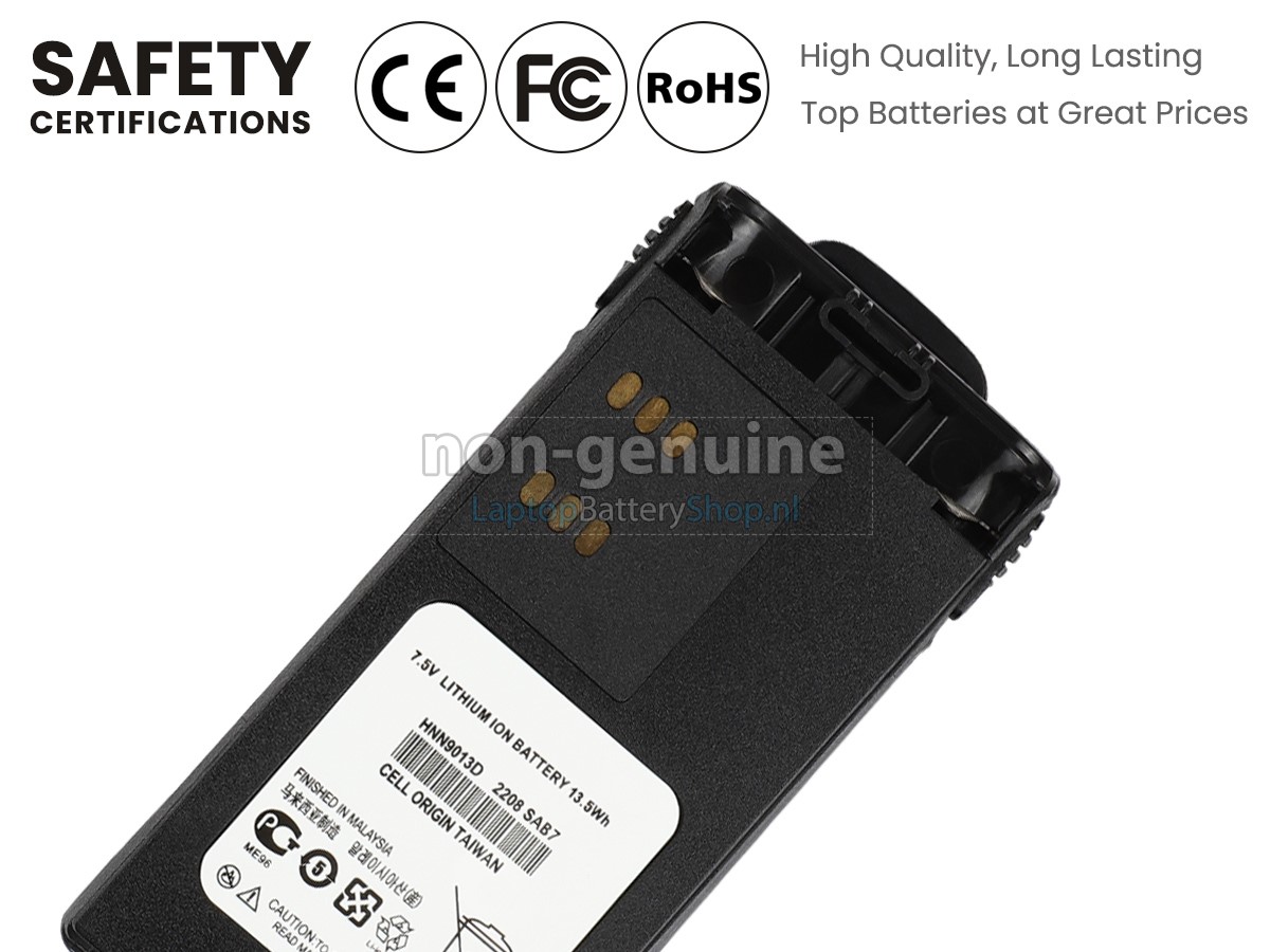 Wij hebben strenge eisen aan de prestaties en veiligheid van producten. De Motorola HNN9013D_R accu moet een aantal strenge kwaliteitscontroles en veiligheidstests ondergaan. Bovendien wordt de Motorola HNN9013D_R-vervangende batterij rechtstreeks op laptopbatteryshop.nl verkocht en kost daarom ongeveer 20-50% minder dan andere tussenpersonen en fysieke winkels.