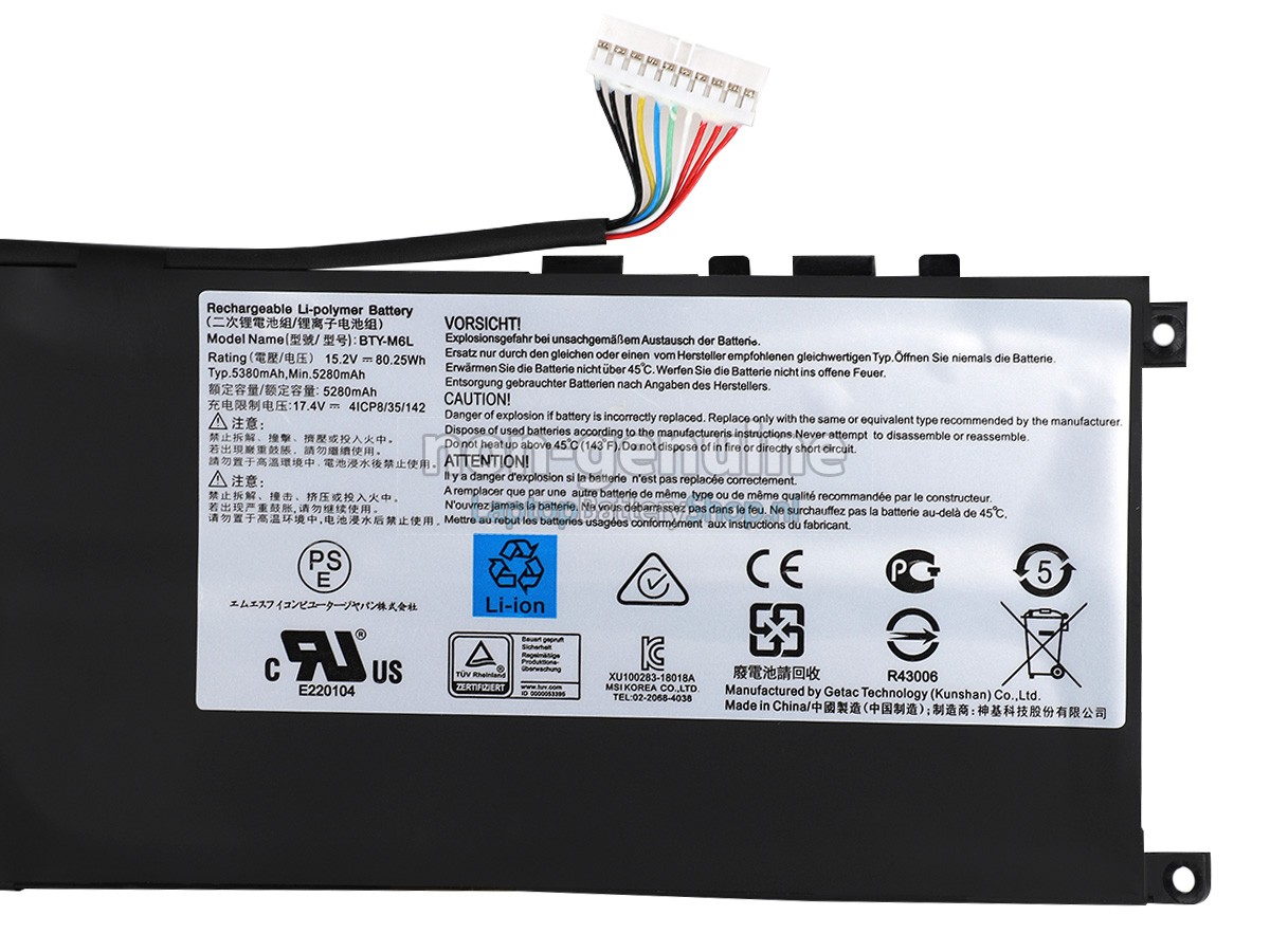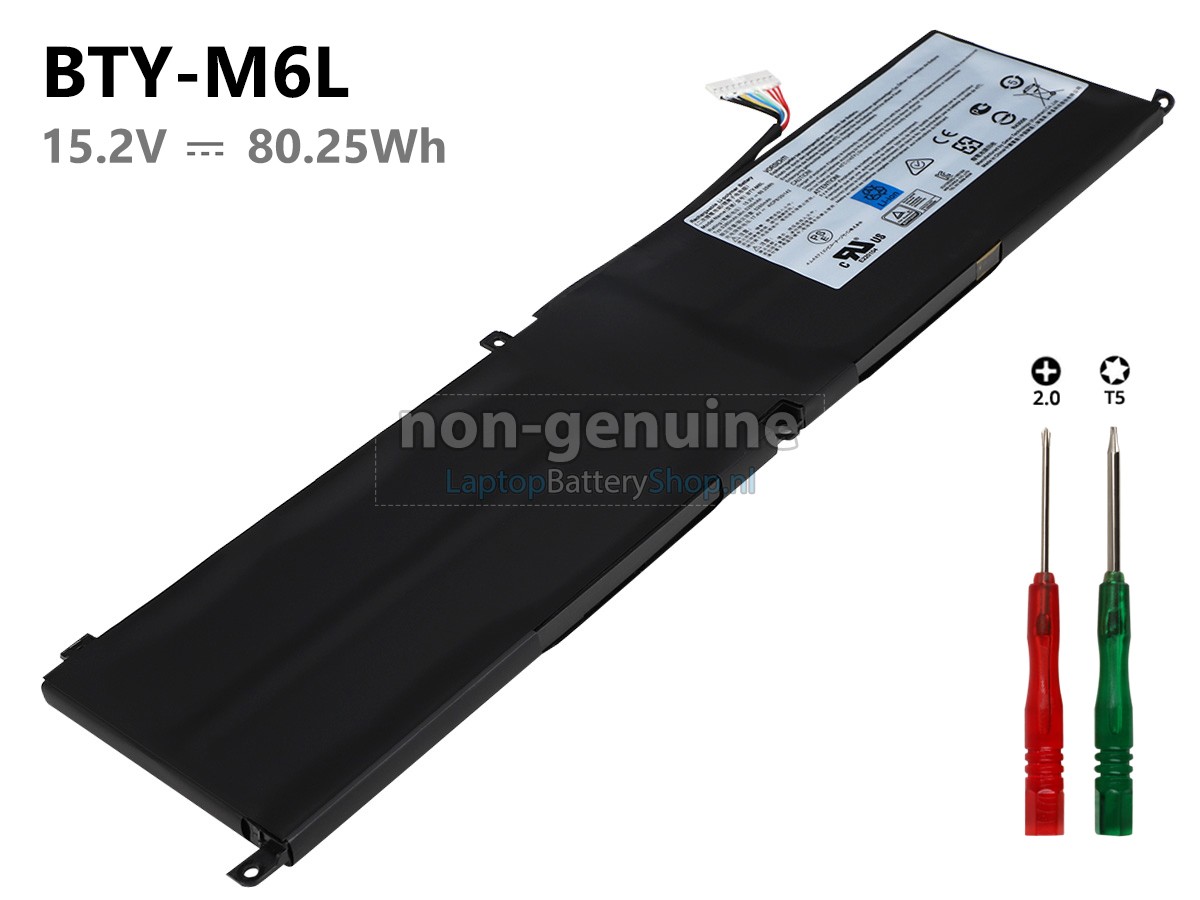 Controleer het model en de vorm van uw originele batterij van de MSI GS75 STEALTH 9SF-282CA (gebruik Ctrl + F om naar modellen te zoeken). Zorg ervoor dat u de juiste batterij krijgt.