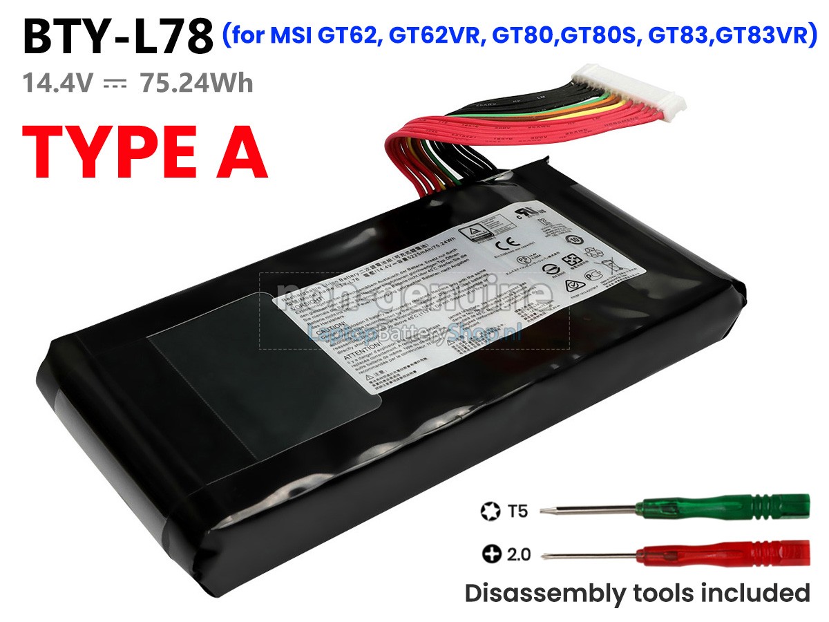 Note :1. 14.4V and 14.8V are compatible, they are in common use.2. Before placing an order please ensure your original battery is same to the battery which your want to order. Since there are two types battery compatible with MSI BTY-L78 battery. Please view the larger images for details, thanks!
