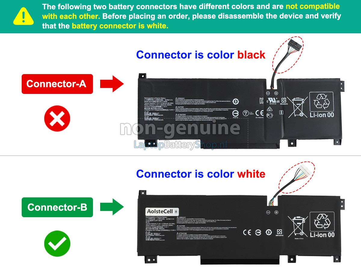 Controleer het model en de vorm van uw originele batterij van de MSI KATANA 17 B12UCXK (gebruik Ctrl + F om naar modellen te zoeken). Zorg ervoor dat u de juiste batterij krijgt.