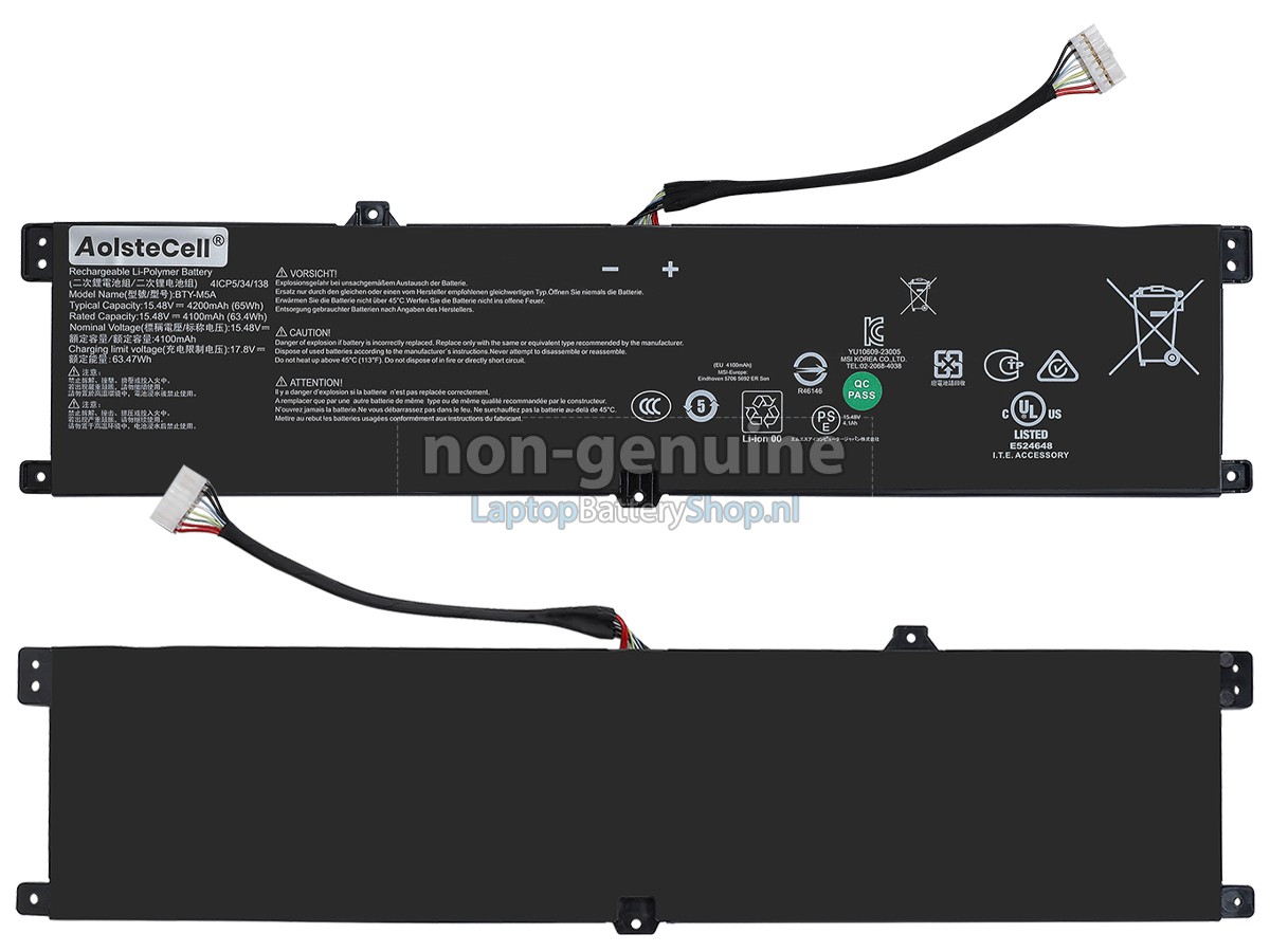 Controleer het model en de vorm van uw originele batterij van de MSI SWORD 16 HX B14VGKG-013UK (gebruik Ctrl + F om naar modellen te zoeken). Zorg ervoor dat u de juiste batterij krijgt.