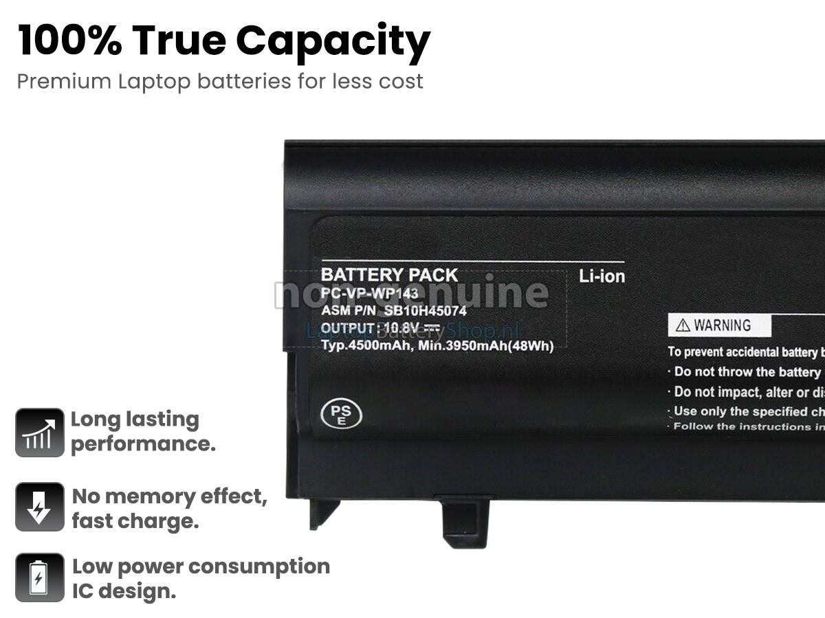 De NEC SB10H45072 notebook batterij die wij verkopen garandeert u 12 maanden garantie! Tijdens de productgarantieperiode kunnen niet-kunstmatige defecte producten gratis worden vervangen. Wij zullen alle verzendingskosten dragen.