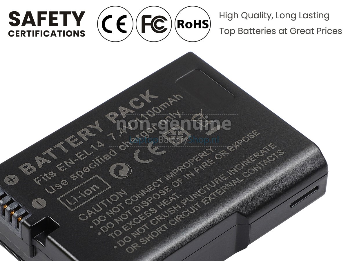 100% OEM-compatibel met de originele Nikon D5200 accu.