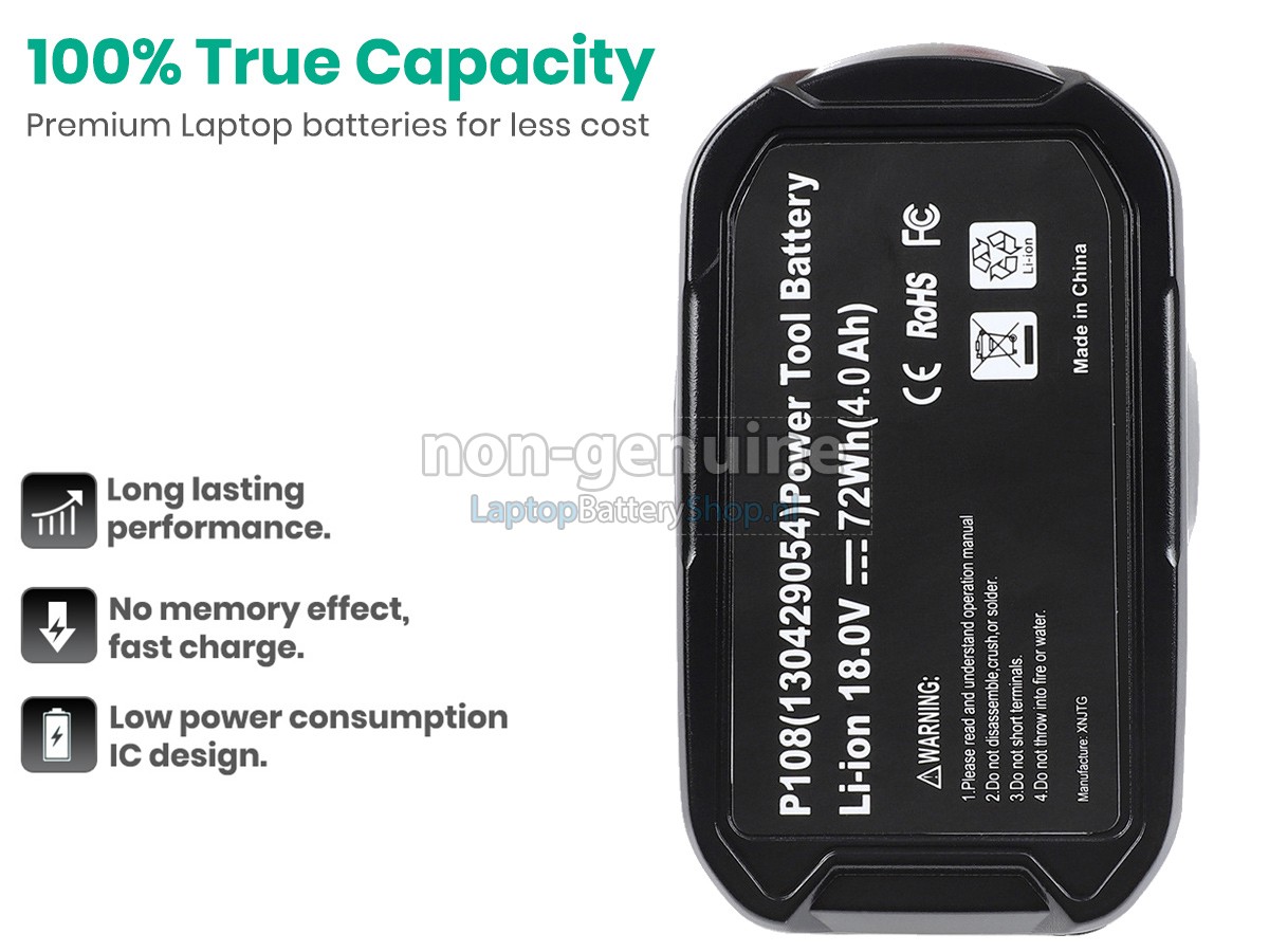 100% OEM-compatibel met de originele Ryobi P100 accu.