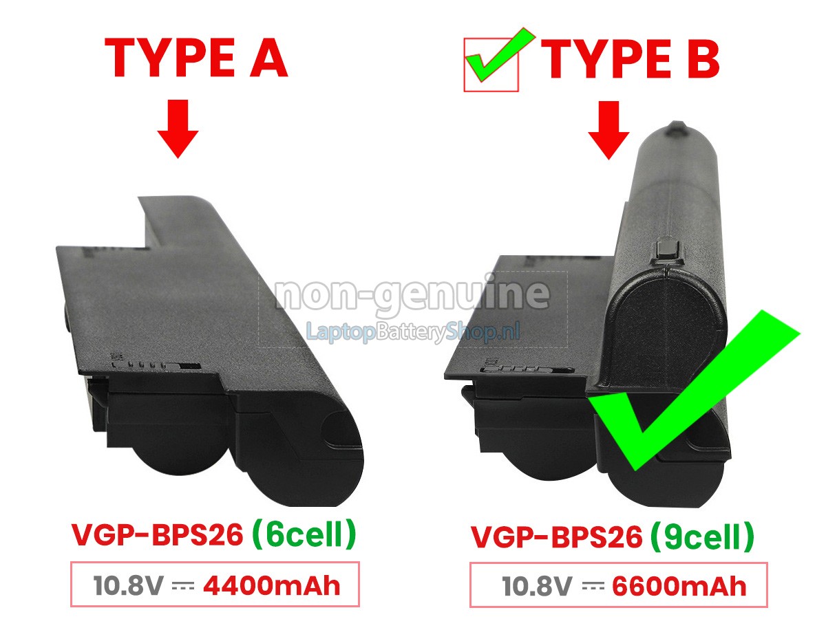 Controleer het model en de vorm van uw originele batterij van de Sony VAIO VPCEH3B1E (gebruik Ctrl + F om naar modellen te zoeken). Zorg ervoor dat u de juiste batterij krijgt.