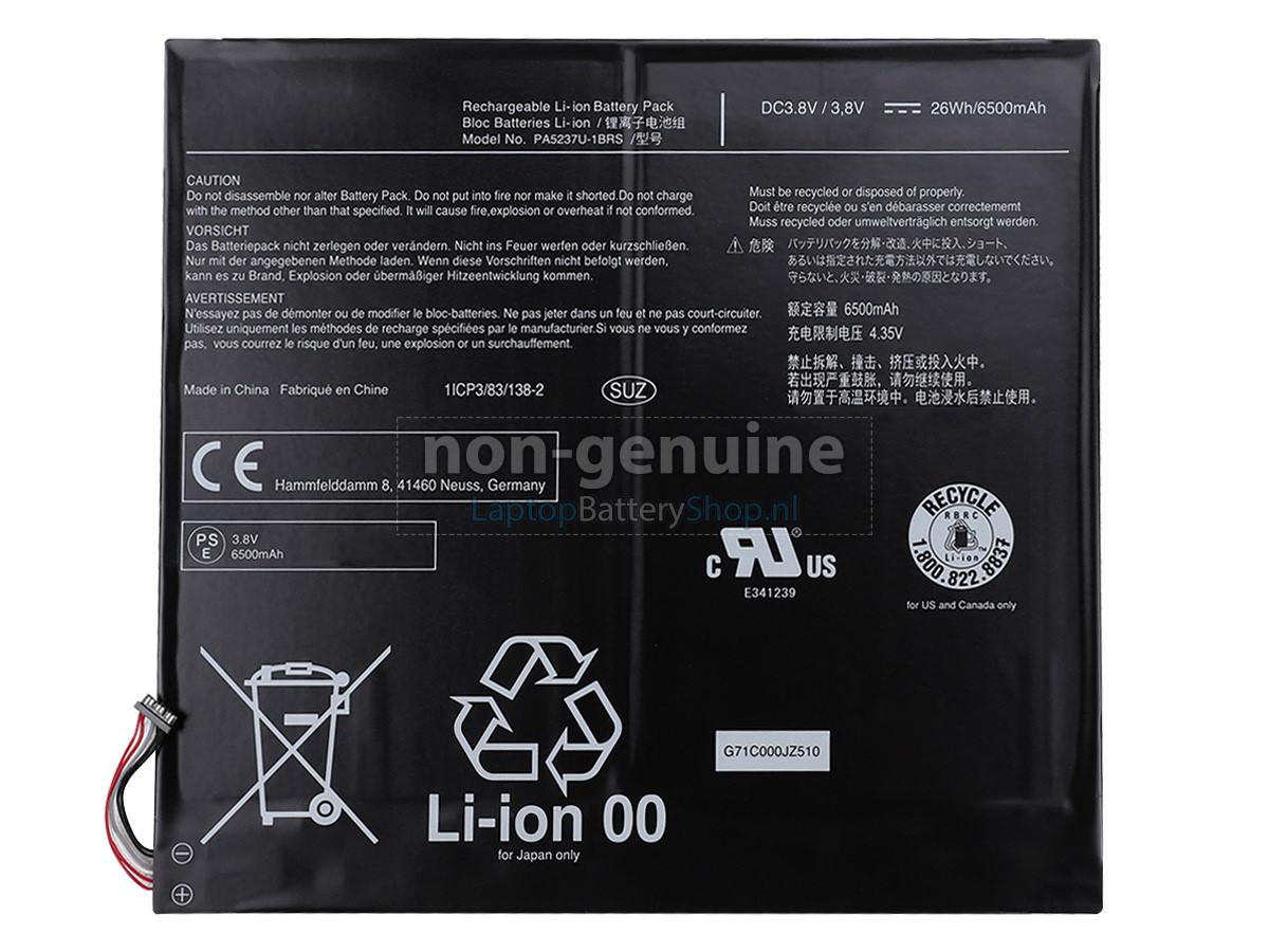 Controleer het model en de vorm van uw originele batterij van de Toshiba DYNAPAD WT12PE (gebruik Ctrl + F om naar modellen te zoeken). Zorg ervoor dat u de juiste batterij krijgt.